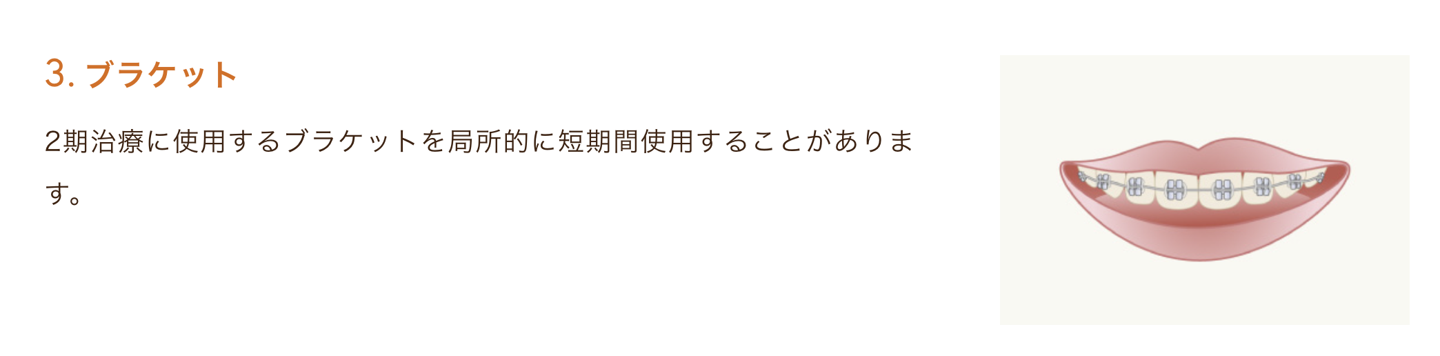 - 2期治療に使用するブラケットを局所的に短期間使用することがあります。