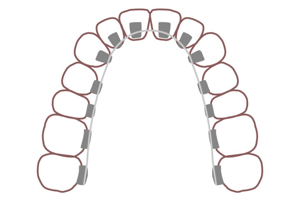 ラビアル矯正とは、従来型の歯の表面(唇側)に装置を装着する矯正方法です。以前は金属色の装置が目立ちましたが、近年は透明や白いブラケットの進化により見た目の違和感も大幅に減っています。